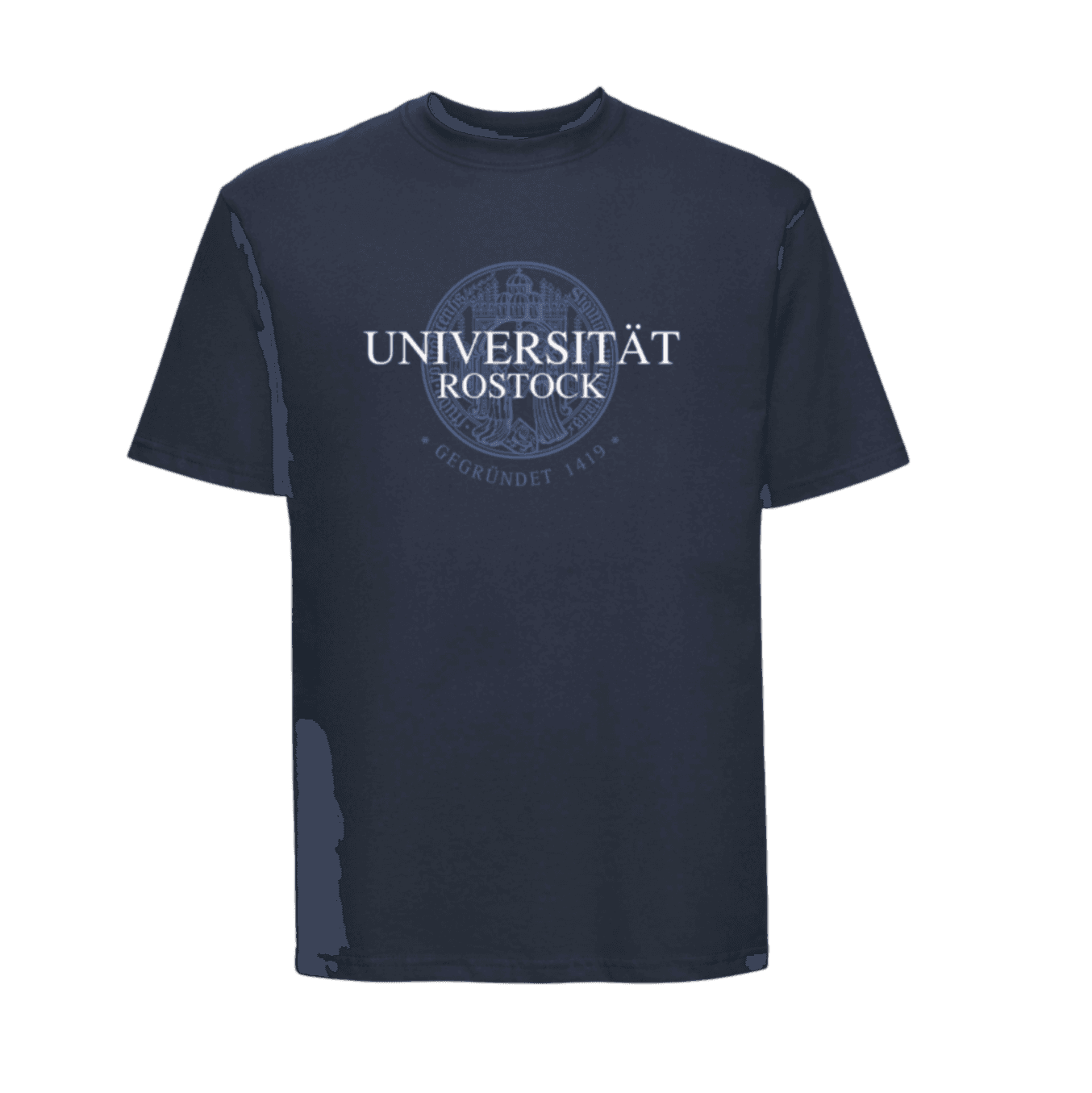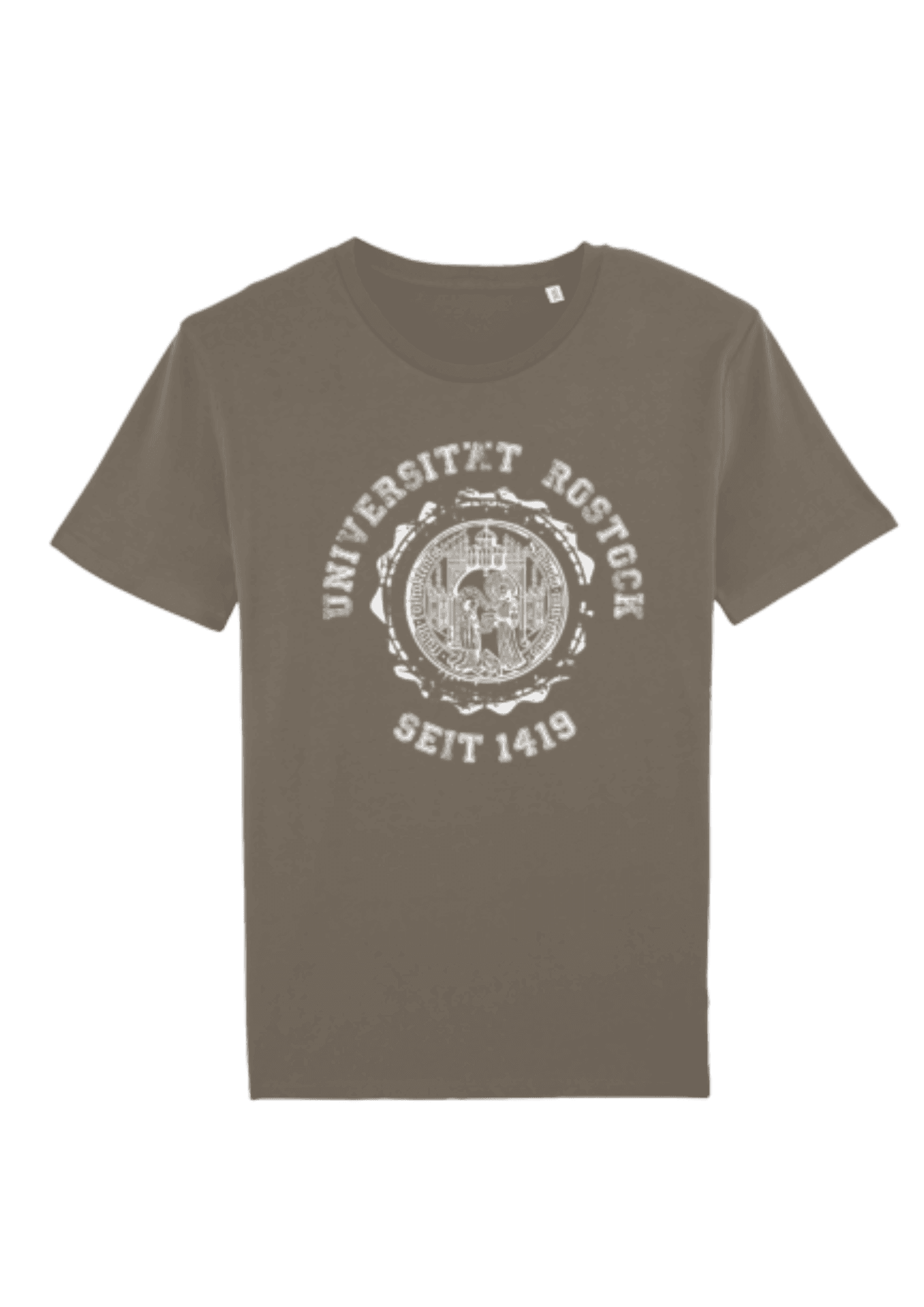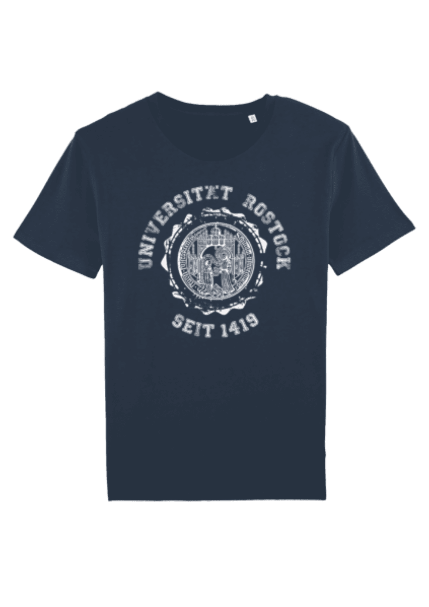 T-Shirt mit Schriftzug Universität Rostock gegr. 1419 und Siegel im Nacken